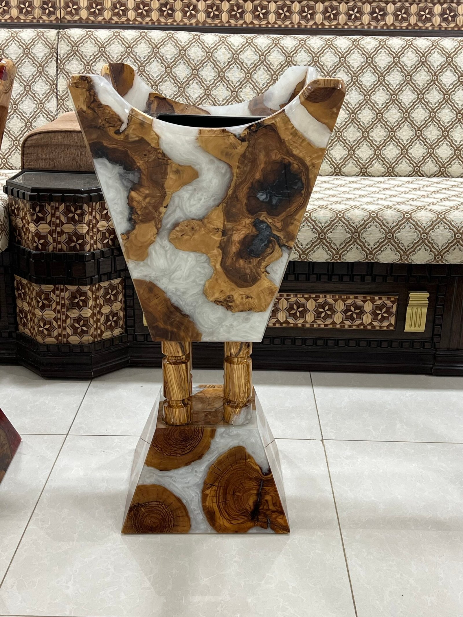 مبخر حجم كبير جدا 85 cm تم تصنيعه صناعه يدويه من خشب الزيتون الطبيعي و مادة الايبوكسي يصلح للاستخدام في الصالات والدواوين كتحفه فنية وديكور للمنازل وتقدر تبخر فيه المكان وامن للاستخدام